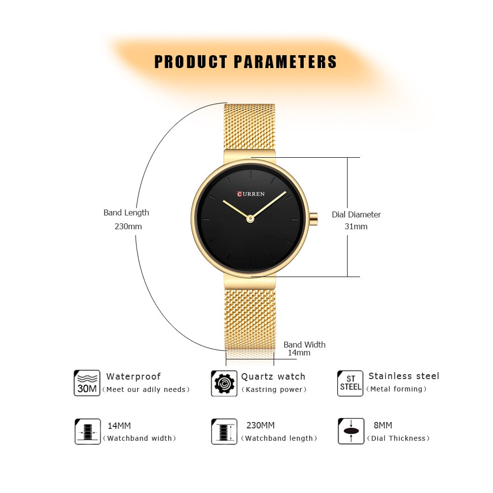 CURREN 9016 Fashion Blue Ladies Watches Mesh Stainless Steel Quartz Watch Women Luxury Simple Wristwatches Analog Lady Clock